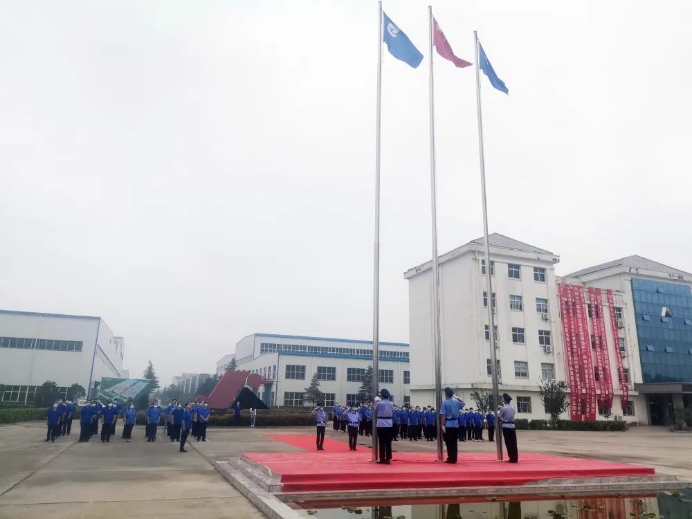上午8:28分,在集團總部廣場舉行了升旗儀式。冉冉升起的國旗、中軸旗,迎風(fēng)飄揚,格外鮮明、亮眼